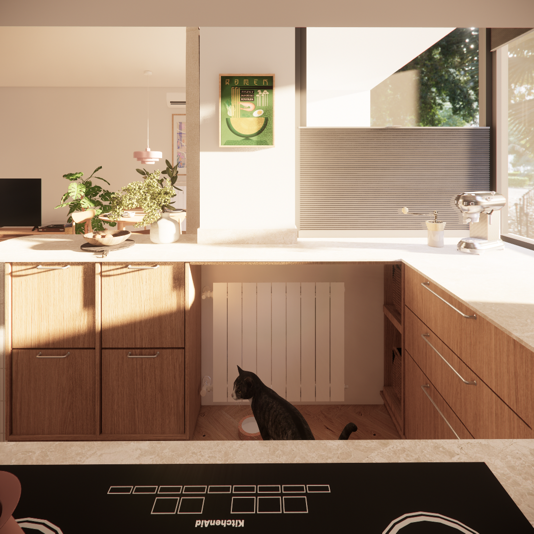 To miejsce ma służyć kotom 😉 … ale też relaksowi, czytaniu książek, planszówkom z przyjaciółmi, rodzinnym obiadom (sporo jak na jedno pomieszczenie, jak na to patrzę).